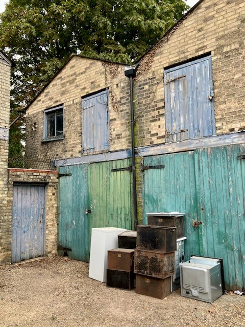 I went out again for lunch and passed one of the outbuildings being tidied, as a job for August’s quieter period. Its contents were being thrown in a skip or stacked in a pile.