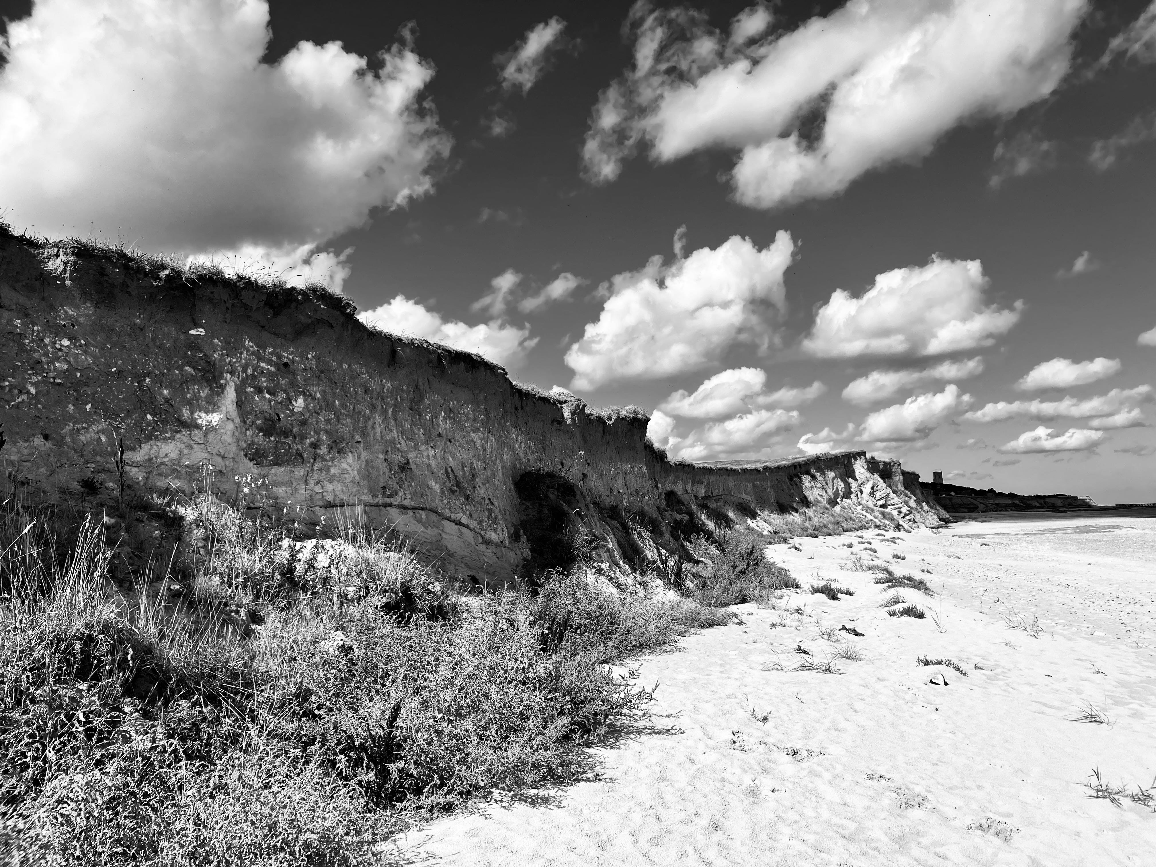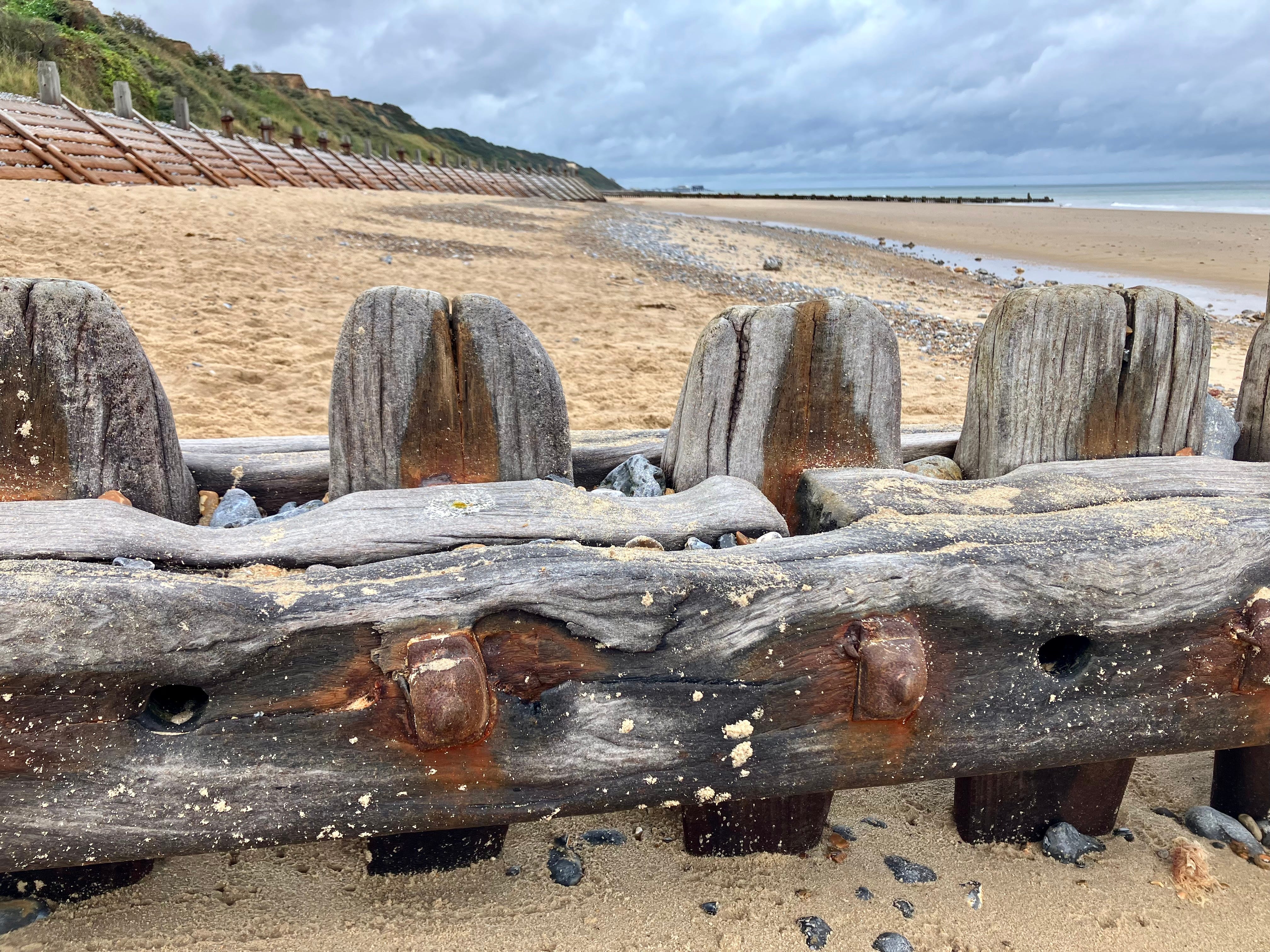This was a place for holidays, of steps down to the sandy beach, of wrestling with windbreaks for staking out a sheltered area and sun loungers for relaxing before paddling at the water’s edges or going into the cold salty water, with a gasp, for a swim. Now it is reverting to nature.
